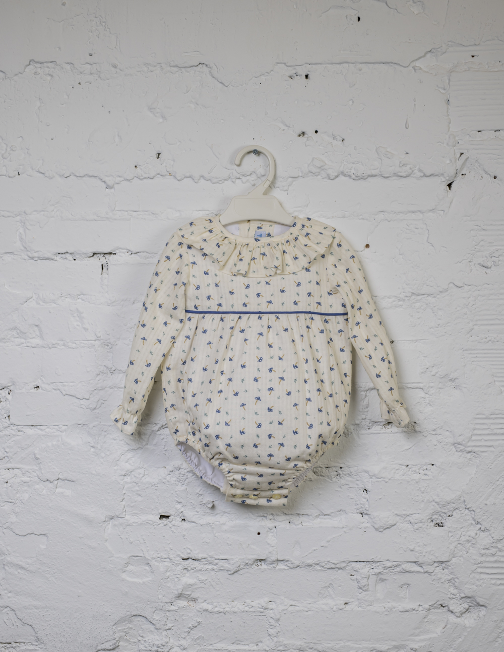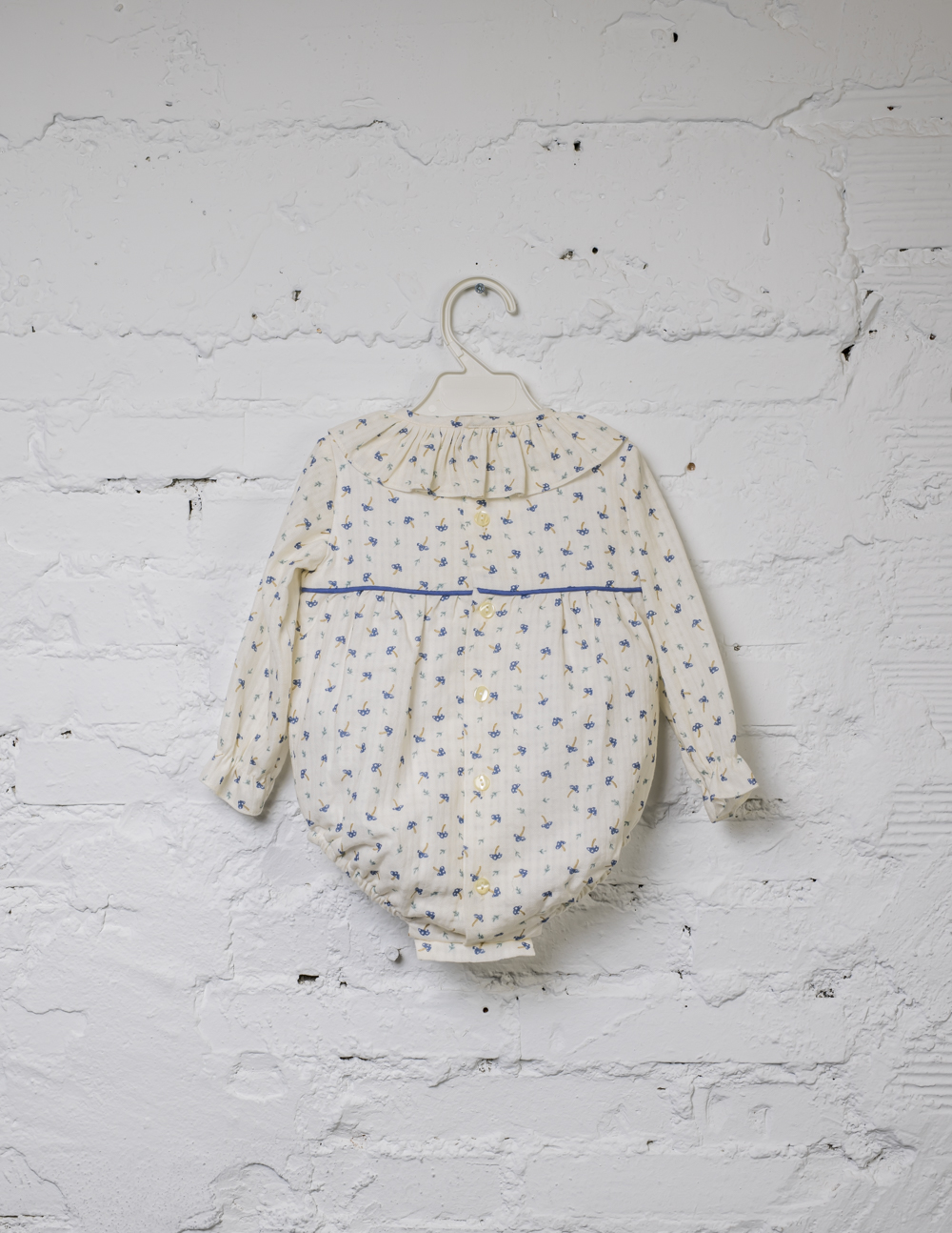 Está prenda se ha confeccionado con una apertura total espalda y en la entrepierna, para facilitar el cambio de pañal. Forrado.