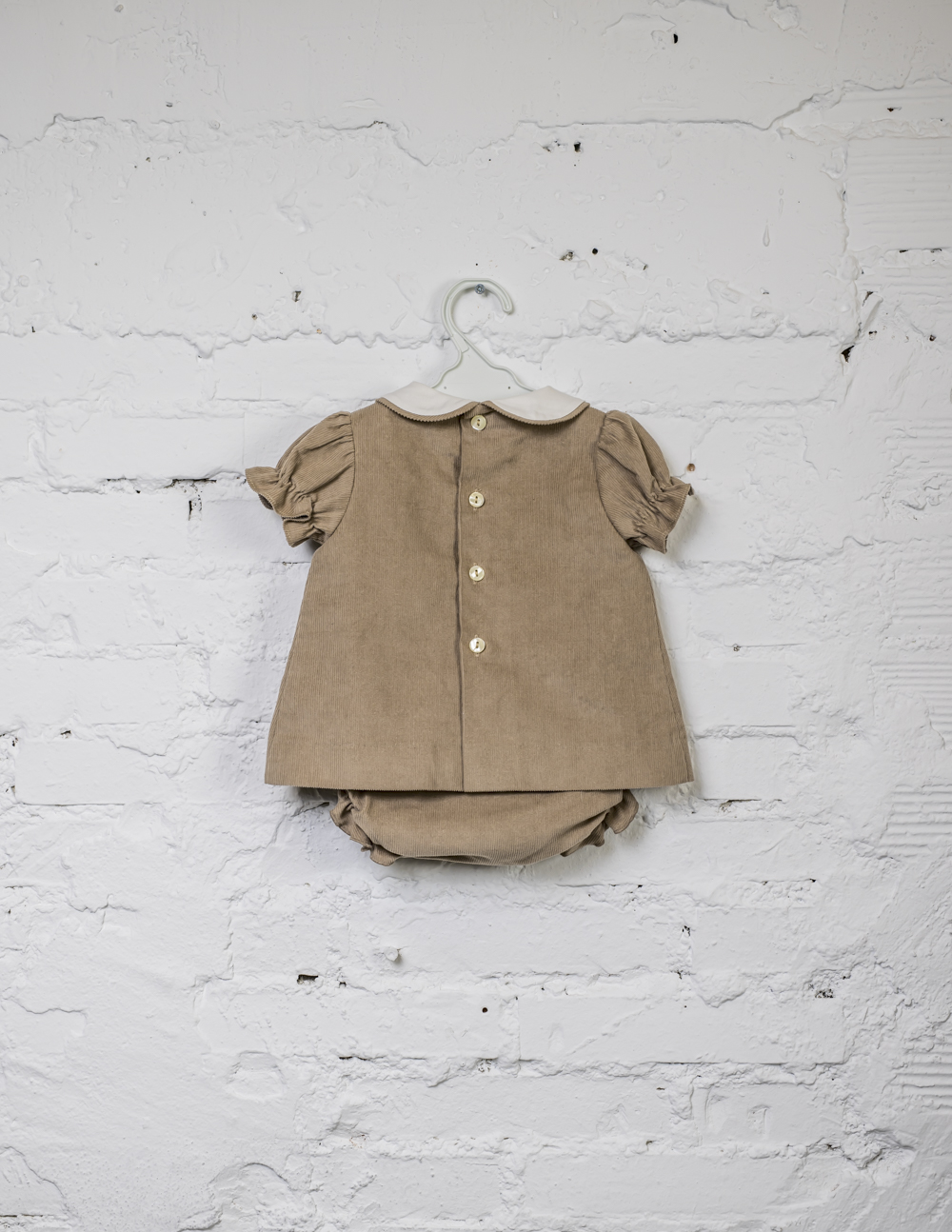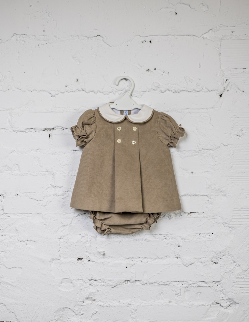 Para el invierno no hay una prenda más cómoda que nuestro conjunto vestido y braguita de micropana tierra. Con un coqueto cuello bebé de viyela crema ribeteado, consigue un aire fino y elegante a la prenda. Forrado. Braguita con volantes en piernas sin forrar.